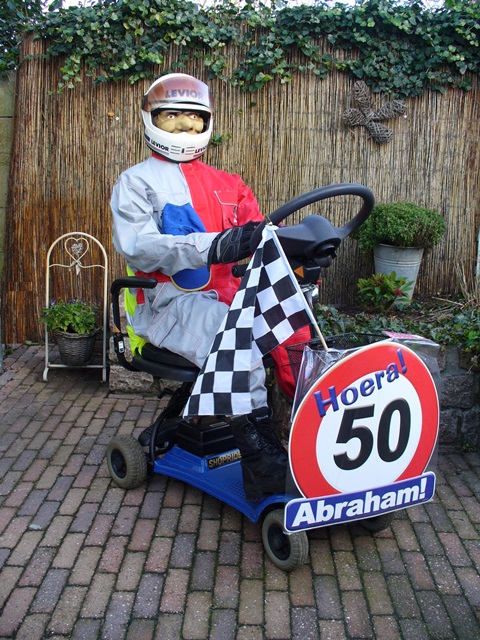 Deze supersnelle, boete verslurpende Abraham wordt in zijn prachtige kleine scootmobiel geleverd inclusief alle afgebeelde attributen. Wordt met leeftijdsbord geleverd!