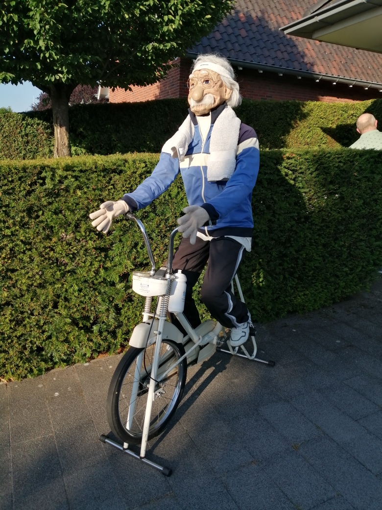 Deze sportieve Abraham gaat "elke" dag naar de sportschool voor een strakke body. Compleet met hometrainer huur je deze Abraham pop.