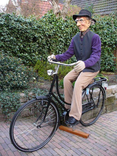 Deze nette heer wordt met fiets geleverd.
