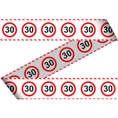 Hier is het feest! Met dit Afzetlint Verkeersbord 30 weet iedereen waar het feest is.  Dit afzetlint is meerkleurig en toont Verkeersborden 30. Het lint is 7,5 cm hoog en 15 meter lang. Dit artikel is gemaakt van plastic.