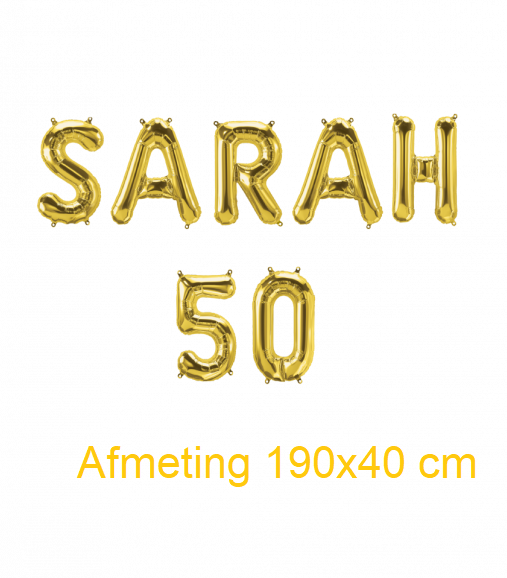 Geen gedoe met losse ballonnen, want met foil balloon kit Sarah 50 ben je in één keer klaar.