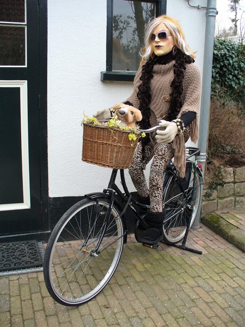 Voor de jonge ogende Sarah kun je deze hippe pop op de fiets huren. Nog mooi blond en hippe kleding aan.