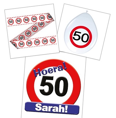 Versierpakket Verkeersbord voor de jarige Sarah.