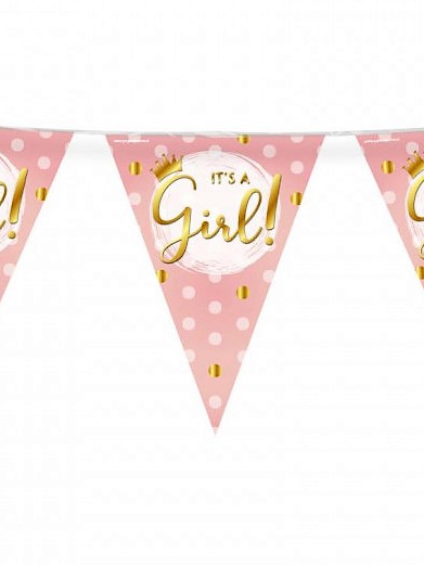 Versier de tuin of woonkamer met deze vlaggenlijn it's a girl.