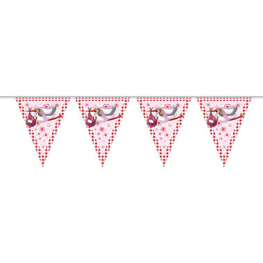 Geboorte Meisje Vlaggenlijn Ooievaar - 10 meter. Kleur: Roze.  Het artikel is gemaakt van plastic.