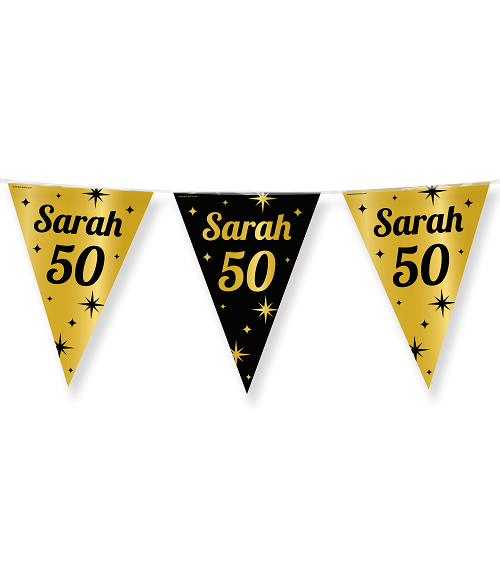Trendy zwart/goud vlaggenlijn 50 jaar Sarah - 10 mtr lang.